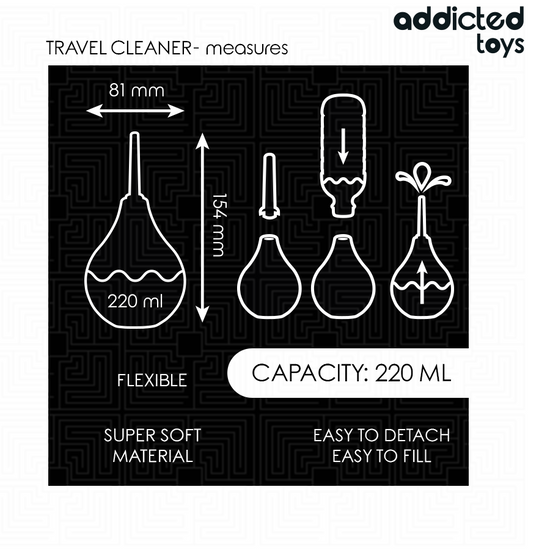 Le nettoyant anal de voyage grand format Addicted Toys est un excellent choix pour ceux qui recherchent un produit de plus grande capacité et de plus grande taille, idéal pour un nettoyage plus profond et plus efficace avant ou après la stimulation anale. Avec une capacité de 220 ml, ce nettoyant assure de multiples applications et est parfait pour ceux qui préfèrent un produit plus durable sans sacrifier la portabilité. Sa conception pratique et ergonomique en fait une option pratique et facile à utiliser.