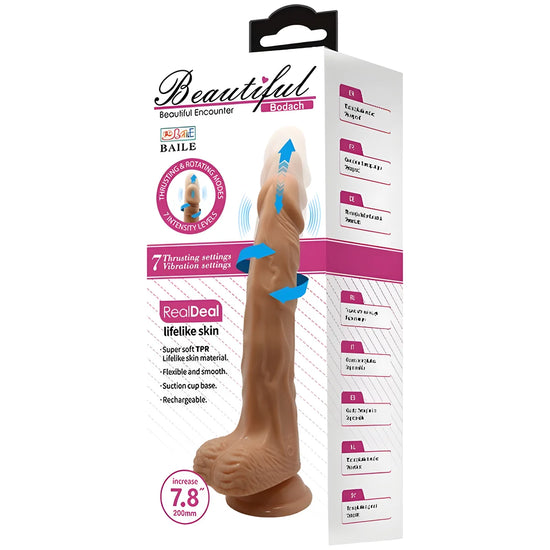 Profitez du festin palpitant et rotatif ! Le vibromasseur à la pointe de la technologie pour des sensations réalistes ! Ce vibromasseur réaliste se démarque par ses fonctions de vibration extraordinairement intenses et de poussée rotative dans 7 modes. Il ressemble presque à un objet réel grâce à son gland, ses veines et ses testicules réalistes et prononcés. La ventouse permet le plaisir mains libres. Toutes les fonctions peuvent être facilement contrôlées en appuyant simplement sur un bouton. Rechargeable : comprend un câble USB.