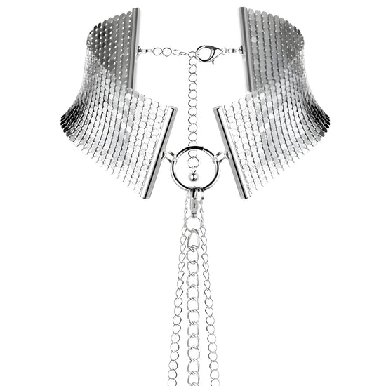 Contenu : accessoire tour de cou en maille métallique et ceinture en chaîne réglable