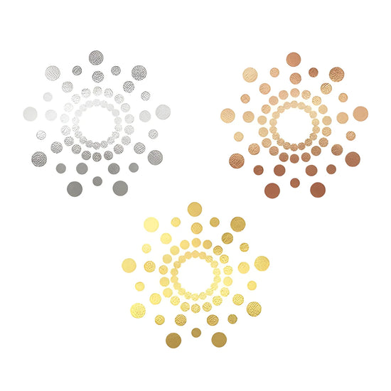 Un ensemble de trois tatouages temporaires de couleurs différentes : or, argent et cuivre.