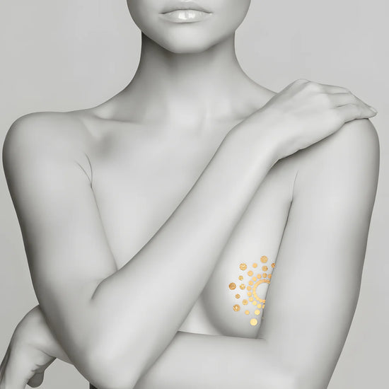 Ces tatouages éphémères circulaires s'adaptent à tous les types de seins et les mettent en valeur. Ils conservent la forme emblématique du classique Mimi, décorant la peau de manière très sensuelle, mettant en valeur la beauté du corps féminin.