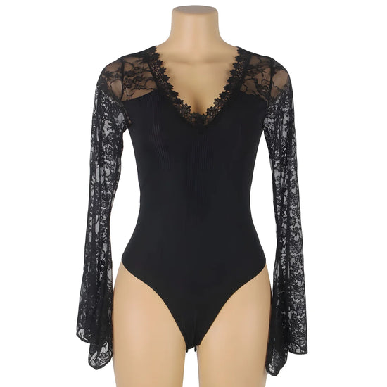 Le body Subblime en dentelle florale joue la carte de la séduction raffinée. Son tissu délicatement travaillé mêle transparence et motifs fleuris pour sublimer la silhouette. Le décolleté plongeant attire les regards, tandis que les manches longues apportent une touche de sophistication.