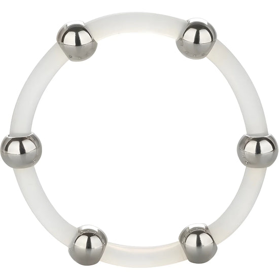 Conçu pour améliorer, intensifier et intensifier l'extase à chaque fois que vous enfilez le grand anneau en silicone perlé en acier.