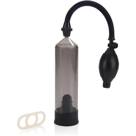 - Il comprend un anneau en silicone pour la base du pénis, pour le maintenir en érection une fois l'utilisation de la pompe terminée.