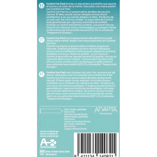 Le préservatif Control Ice Feel procure une fraîcheur agréable qui procure l'arôme et la couleur de la menthe, connue comme aphrodisiaque. Découvrez une nouvelle passion avec Control Peppermint Ecstasy.