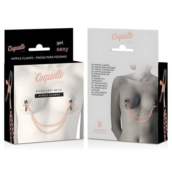 Ces pinces à tétons en chaîne de Coquette Chic Desire ! Ils sont unisexes et très faciles à utiliser. Les clips et la chaîne sont en métal sans nickel. Ils ne contiennent pas de nickel. Vous pouvez utiliser les pinces à tétons pour vos secrets coquins ou comme accessoire stimulant lors de la pénétration de votre amoureux.