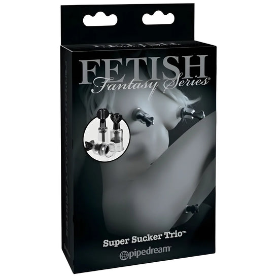 Si vous recherchez une aspiration intense sans utiliser de pompe externe, le trio Super Sucker en édition limitée de la série Fetish Fantasy est le choix parfait pour augmenter la sensibilité du clitoris et des mamelons. Doté de deux puissantes ventouses pour tétons et d'une ventouse cylindrique transparente, ce combo saura satisfaire vos zones les plus érogènes sans pompe à pression.