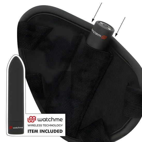 Ce modèle cyberstrap est plus avancé, il comprend un vibromasseur télécommandé qui s'active simultanément avec le gode, procurant des vibrations aux deux personnes. Le vibrateur est inséré à l’intérieur du harnais lui-même, directement dans la zone vaginale sensible.