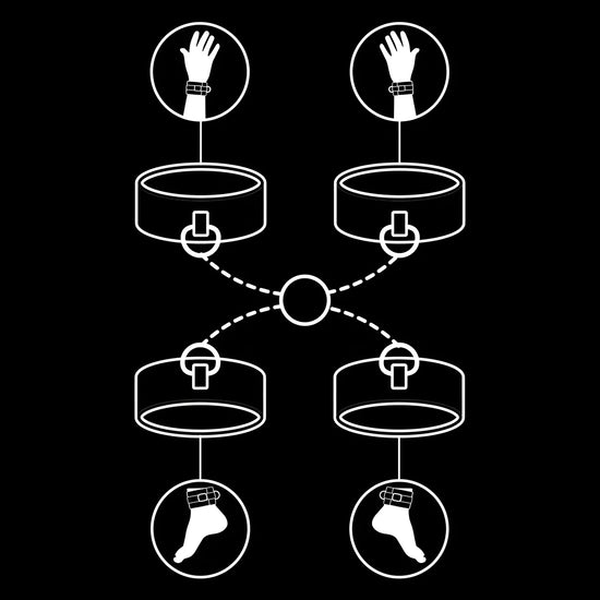 Prenez le contrôle de chaque mouvement !! Ces menottes permettent de créer différentes positions, elles sont adaptées aux chevilles et aux poignets permettant une soumission complète de votre amoureux. Cuir vegan doublé au confort total, matière extrêmement résistante adaptée aux avancés ou débutants.