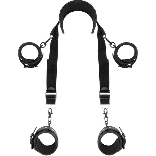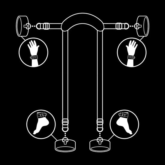 FETISH SUBMISIVE présente un ensemble unique de contraintes pour faciliter la position parfaite du maître pour la pénétration avec les jambes relevées.