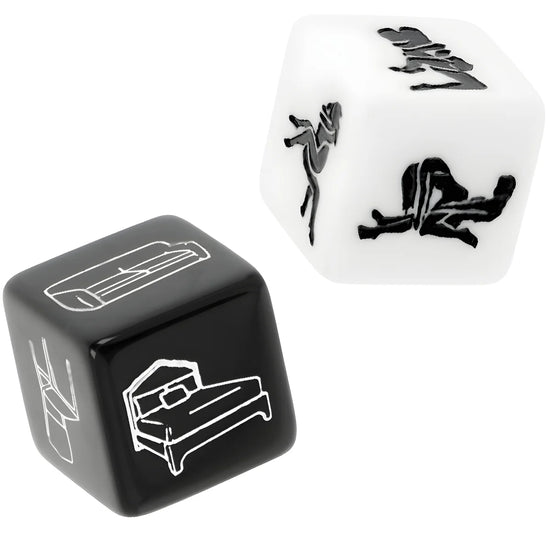 Que votre soumis soit celui qui lance les dés, le noir indiquera l'endroit où il recevra son agréable récompense, le blanc la position dans laquelle il la recevra. La personne dominante peut aussi les lancer, après tout c'est lui qui commande et les dés l'aideront à décider où exécuter sa punition sensuelle.