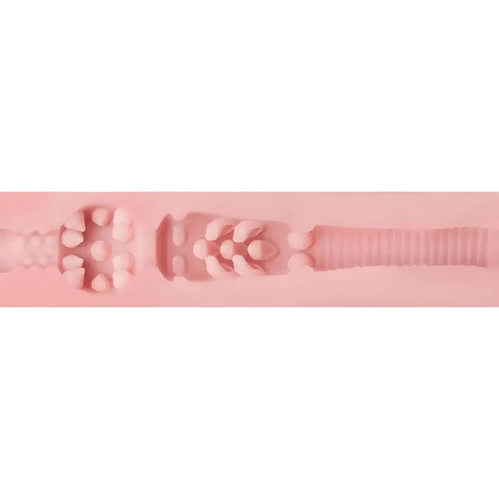 En entrant, trois petits anneaux de picots vous serreront fermement, suivis du dôme de plaisir ultra-pénétrant qui vous offrira un bonheur inégalé à 360 degrés. La chambre suivante commence par une petite rangée de dents et de crocs qui vous frottent et vous tirent délicieusement. Enfin, une rangée de grosses bosses mène à une texture super nervurée qui se rétrécit au fur et à mesure que vous avancez à l'intérieur.