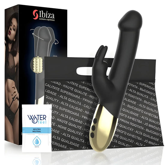 Le vibromasseur lapin salué par la critique s'est encore amélioré ! Fabriqué avec le silicone le plus doux et le plus sûr pour le corps dans de superbes couleurs fusion de noir et d'or. , IBIZA ROTATING AND RABBIT™ est le parfait masseur double action qui vous permettra d'obtenir un résultat satisfaisant. L'option de stimulation simultanée du point G et du clitoris vous permet de profiter d'une stimulation puissante et de libérer toutes vos inhibitions refoulées.