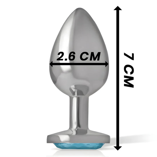 Faites briller vos fesses avec le plug anal Intense, orné d'un bijou en diamant. Ce plug de haute qualité en métal avec des détails bleus brillants ajoute du glamour à vos aventures anales.