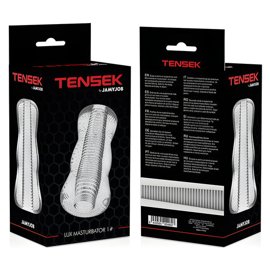 Profitez d'une toute nouvelle expérience. Le modèle innovant TENSEK rejoint la gamme de masturbateurs JAMYJOB et présente un design unique entièrement transparent qui ne laisse rien à l'imagination.