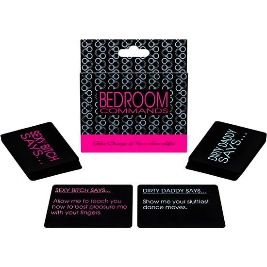 Prenez le contrôle de votre vie amoureuse ! Bedroom Commands est un jeu de cartes à double jeu de commandes. Un deck est pour le Dirty Daddy et l'autre pour la Sexy Bitch. Chaque fois que l'un de vous a envie de prendre en charge sa vie amoureuse, sélectionnez une carte pour révéler une action pour la soirée. Certaines cartes sont drôles, amusantes et sexy. D'autres cartes offrent des suggestions sexuelles uniques pour apporter de la variété dans votre relation.