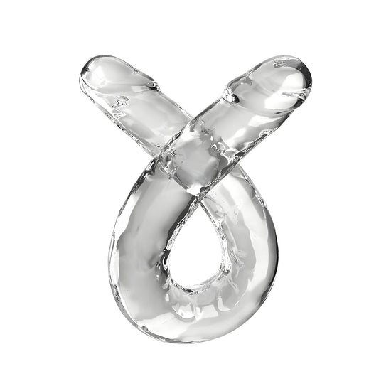 Le gode King Cock Clear Double Trouble combine un double gode translucide avec un design de pénis réaliste : une tige flexible, des veines détaillées et une tête définie.