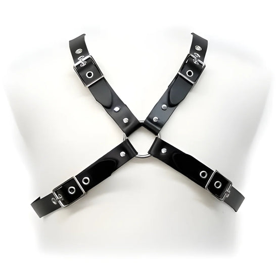 Pratiquez le BDSM avec ce harnais en cuir pour homme, avec sangles réglables en forme de Croix.