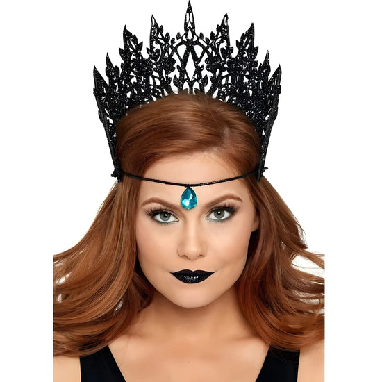 Ajoutez une touche de glamour et de sophistication à votre look avec notre couronne à paillettes noires avec bijou bleu .