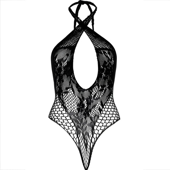 Le teddy dos nu présente un design croisé qui met en valeur votre décolleté et met en valeur l'élégance de vos épaules, offrant une silhouette flatteuse et audacieuse. La pièce maîtresse de cet ensemble est l'ouverture en trou de serrure stratégiquement placée, un détail suggestif qui allie la délicatesse de la dentelle à la tentation irrésistible du filet.