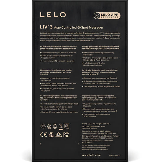 Nous sommes ravis de vous présenter LIV™ 3, notre tout dernier vibromasseur point G qui épouse parfaitement le corps et est conçu pour améliorer le parcours d'amour-propre de ses clients. Avec son design raffiné et ses options de plaisir personnalisées via l' application LELO, LIV™ 3 ne manquera pas d'attirer votre attention .