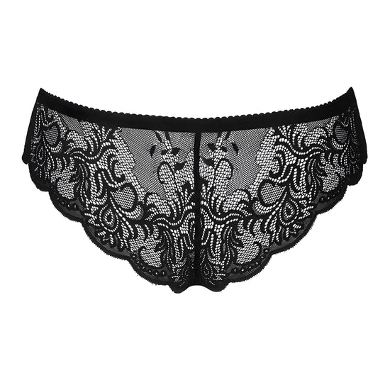 Le modèle proposé est extrêmement sensuel et sexy. La culotte est très impressionnante et séduisante avec sa dentelle translucide. La dentelle est solide, d'excellente qualité, de belle facture. La matière est également douce et délicate et s'adapte parfaitement à la forme du corps en le soulignant subtilement. La culotte a une fente à l'entrejambe. Leur caractéristique est une façade audacieuse et un dos élégant et joliment fini. C'est définitivement de la lingerie pour les occasions spéciales, les tenues de soirée. Ce modèle est une proposition idéale pour les femmes qui apprécient le noir classique associé à une coupe fantaisie et une dentelle sensuelle. Cependant, la forme fantaisie de la culotte ne la rend pas inconfortable, au contraire, elle est extrêmement agréable à porter et aérée. De plus, 2 tailles sont utiles : S/M et L/XL, grâce auxquelles nous pouvons choisir la taille de sous-vêtements qui nous convient le mieux. Ce modèle peut être un joli cadeau pour une occasion spéciale : un anniversaire, la Saint-Valentin ou la Saint-Nicolas, même si les occasions d'offrir un cadeau se produisent presque tous les jours.