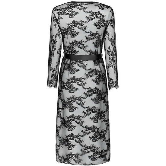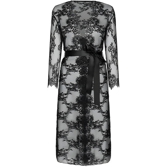 Un peignoir de rêve pour les femmes qui aiment la lingerie sensuelle. Attrayant, sexy, noir, longueur mi-mollet. Le matériau à partir duquel la robe de chambre est fabriquée est du polyamide. Transparent, avec un délicat motif floral. Le peignoir a des manches longues et une bordure décorative sur le devant et les manches. Une large ceinture noire qui peut être nouée autour de la taille ajoute beaucoup de charme et un aspect original. Légèrement ouvert, il sera affriolant, séduisant et très joli. Il se marie à merveille avec des sous-vêtements en dentelle noire ou rouge. Ce sera la tenue parfaite pour un rendez-vous strip-tease. Fabriqué dans une matière infroissable, il s'adapte parfaitement au corps et ne se froisse pas. Si une femme veut se sentir à l'aise et rêve de charmer l'homme de sa vie, ce peignoir sensuel sera un choix parfait. Le produit peut être un excellent cadeau pour une petite amie le jour de la Saint-Valentin, pour une jeune femme lors d'un anniversaire de mariage ou à une autre occasion. Offert par un homme aimant, il apportera sûrement une grande joie à une femme.