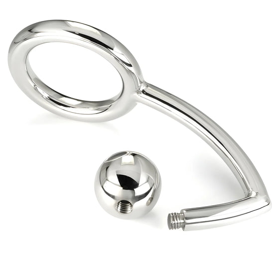 Le cockring en acier maintiendra votre érection plus forte tandis que le crochet avec boule anale vous offrira une stimulation supplémentaire.