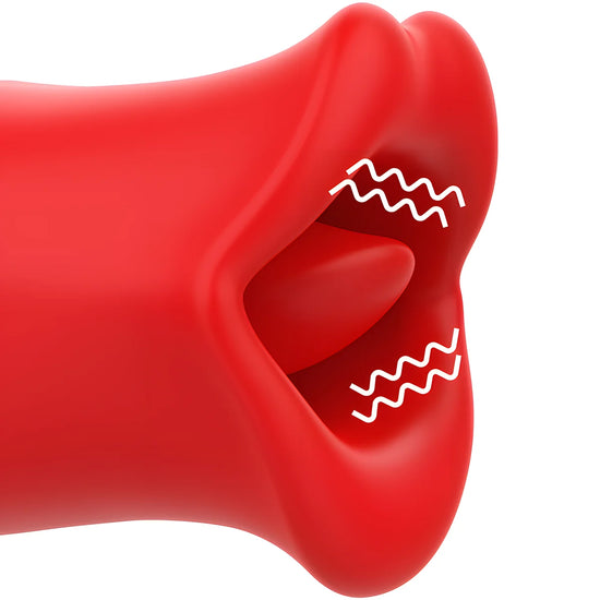 - La forme unique de la bouche réelle avec un stimulateur de langue souple et flexible en forme de point aide à diriger les oscillations pour stimuler méticuleusement toute zone érogène.