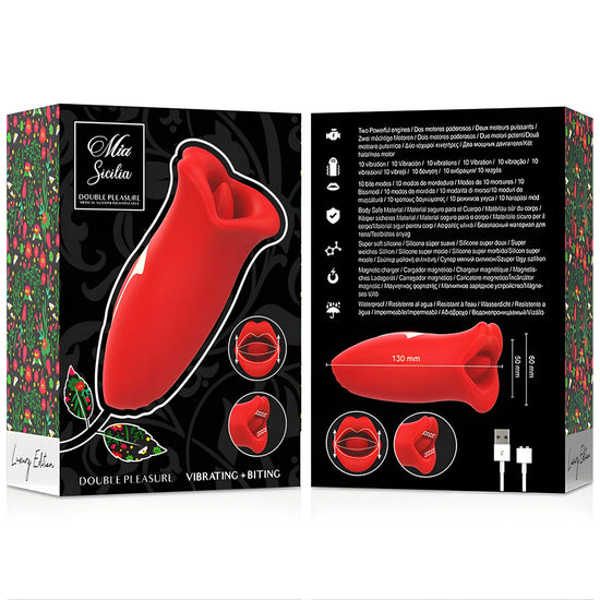 MIA SICILIA est un vibromasseur clitoridien innovant à usage externe qui procure de nouvelles sensations au clitoris et aux autres zones érogènes pour des orgasmes multiples, contrairement aux vibromasseurs conventionnels qui ont tendance à engourdir la zone autour du clitoris. Grâce au mouvement de simulation réel TONGUE, il effectue un mouvement elliptique constant, tandis que la pointe douce et flexible stimule avec une précision absolue. Il a une forme très originale et contient dix modes de plaisir avec des intensités variables. MIA SICILIA est parfait pour les individus ou les couples qui souhaitent vivre un autre type d'orgasme.