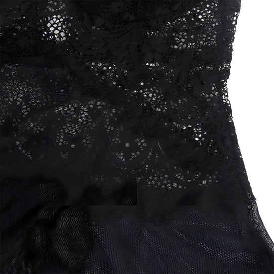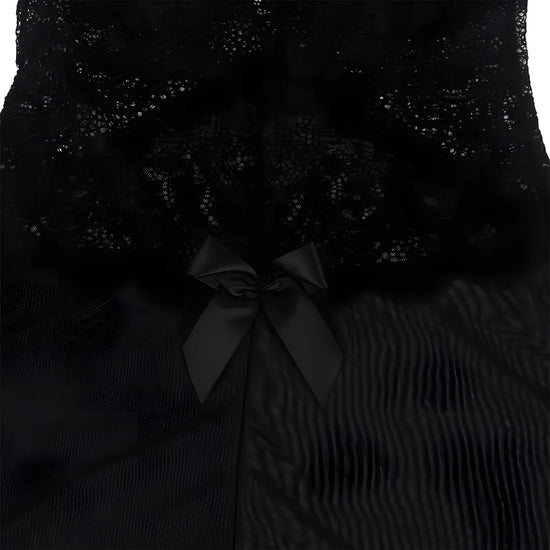 La marque américaine Subblime propose une nuisette en tulle noir qui associe délicatesse et sensualité. Légère et fluide, elle caresse la peau tout en laissant deviner vos courbes grâce à sa transparence subtile. La poitrine est mise en valeur par une dentelle raffinée décorée d’un motif floral, ajoutant une touche de féminité glamour.