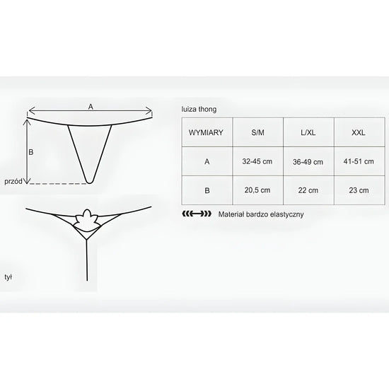 Découvrez le string Luiza rouge de la marque Obsessive, une pièce qui allie confort et sensualité. Fabriqué en dentelle délicate et tissu doux, il épouse vos courbes avec grâce. Son design séduisant et ses détails raf-finés en font un incontournable pour vous sentir sexy et confiante. Avec Luiza, chaque moment devient une occasion spéciale.