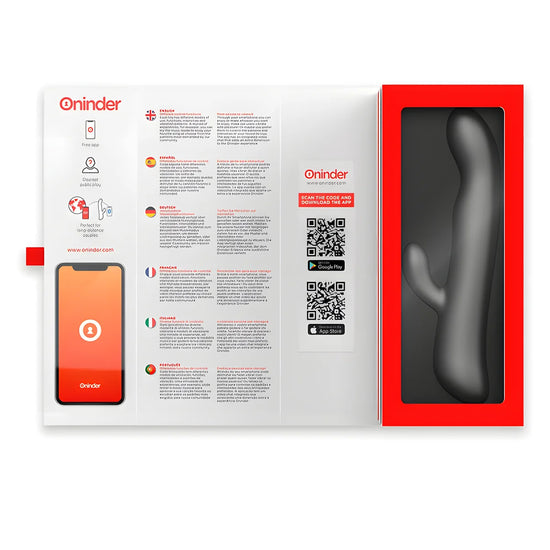 Avec ce vibromasseur, vous pouvez non seulement choisir entre des combinaisons de vibrations et d'intensité prédéfinies, mais vous pouvez également partager un contrôle innovant basé sur une application. Il vous suffit de télécharger l'application gratuite ONINDER™ sur votre appareil Android ou iOS et de connecter votre smartphone ou tablette.