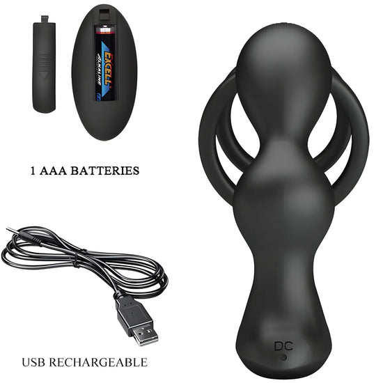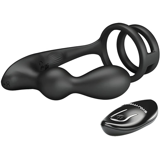 Cet anneau pénien avec plug anal télécommandé est une combinaison d'anneau pénien et de plug anal vibrant fixés solidement.