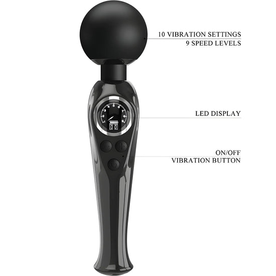 Cette baguette vibrante sophistiquée est dotée d'un moteur exceptionnellement puissant dans sa tête large, dotée d'un col flexible pour vous aider à sélectionner 10 modes de vibration et 9 niveaux de vitesse là où vous le souhaitez. Le corps bulbeux est compact pour une prise en main confortable et suffisamment léger. Il dispose d’un écran LCD numérique facile à utiliser qui affiche les paramètres et le niveau de la batterie. C'est le complément parfait pour la chambre des couples qui apprécient un contact intense, sensuel et vibrant.