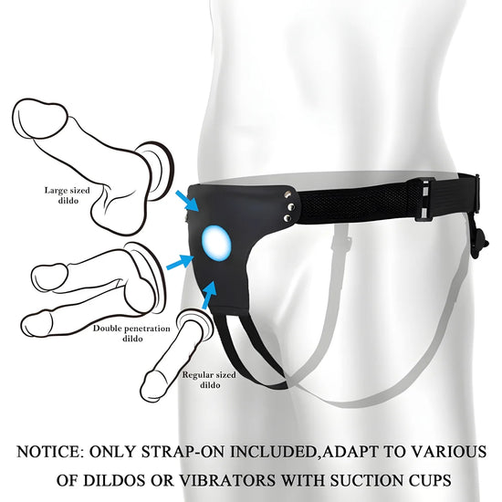 Il peut être combiné avec une large gamme de godes ou vibrateurs compatibles. Les hommes peuvent également utiliser ce harnais avec manche car il est ouvert.