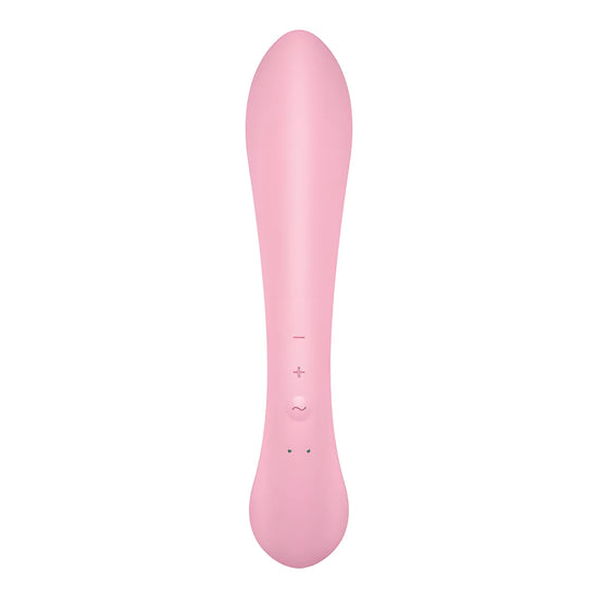 Utilisez les boutons +/- pour contrôler les 12 programmes de vibrations du lapin, et le bouton ~ pour contrôler les 12 programmes de vibrations supplémentaires de la baguette de massage.