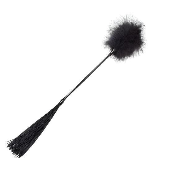 C'est le bon moment pour essayer ce nouveau jouet destiné au plaisir avec un fouet d'un côté et des plumes de l'autre.