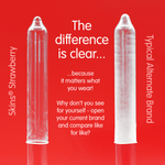 Découvrez notre nouveau pack de 4 préservatifs Fraise, au design élégant et prêt à l'emploi, avec jusqu'à 33 % de préservatifs en plus que le leader du marché. Ajoutez une saveur fruitée classique à votre gamme avec les préservatifs Skins Fraise. Fabriqués en latex naturel de qualité supérieure pour une sensation naturelle et transparente, ces préservatifs offrent une sensation seconde peau sans compromettre la résistance ni la sécurité. Idéal pour les détaillants souhaitant proposer un parfum populaire et fiable pour plus d'intimité et de protection.