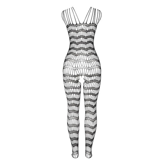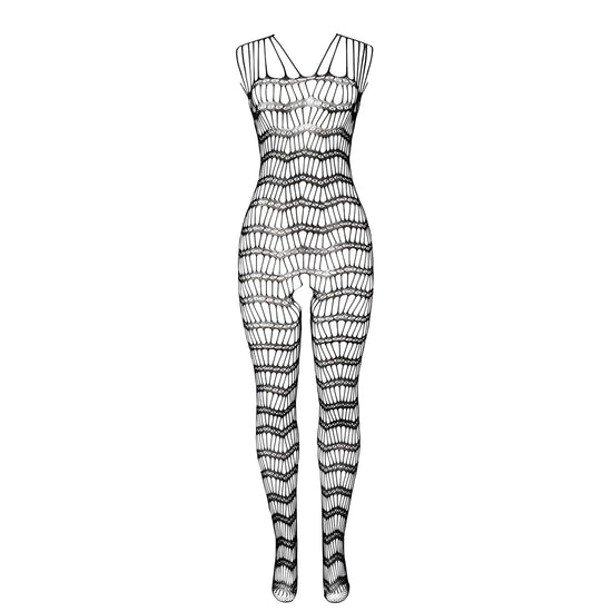 - Style : Bodystocking résille noir avec design sans entrejambe (entrejambe ouvert) et bretelles sur les épaules.